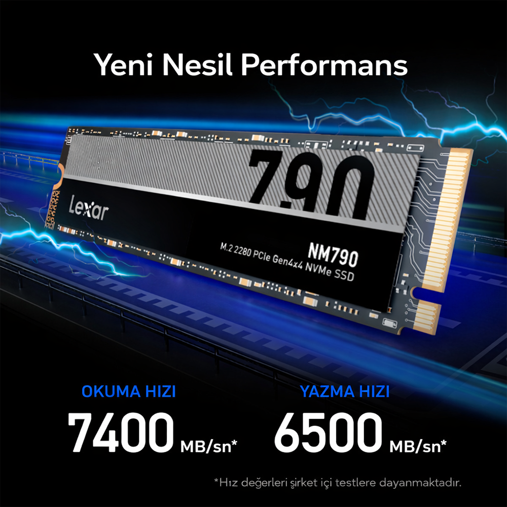 Kapasite 4TB Max Okuma Hızı 7400 MBps Max Yazma Hızı 6500 MBps SSD Tipi M.2 2280