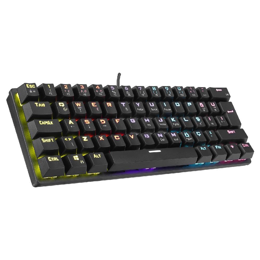 Klavye Boyut TKL Klavye Mouse Yok Bağlantı Tipi Kablolu Dizayn Mini Klavye Türü Mekanik Klavye Tuş Dizilimi Türkçe Q Switch Tipi Red Switch Klavye Aydınlatma Rainbow Klavye Bilek Desteği Var Klavye Numpad Yok Type-C Yok